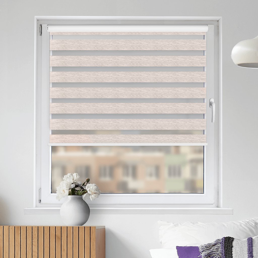 Látkové Rolety Deň a noc fungujú na princípe striedania priehľadných a nepriehľadných vodorovných pruhov. Vďaka ich vzájomnému prekrývaniu môžete efektívne regulovať priechod slnečných lúčov. Rolety môžete tiež zatiahnuť tak, aby fungovali ako plné látkové rolety alebo naopak úplne vytiahnuť nahor.