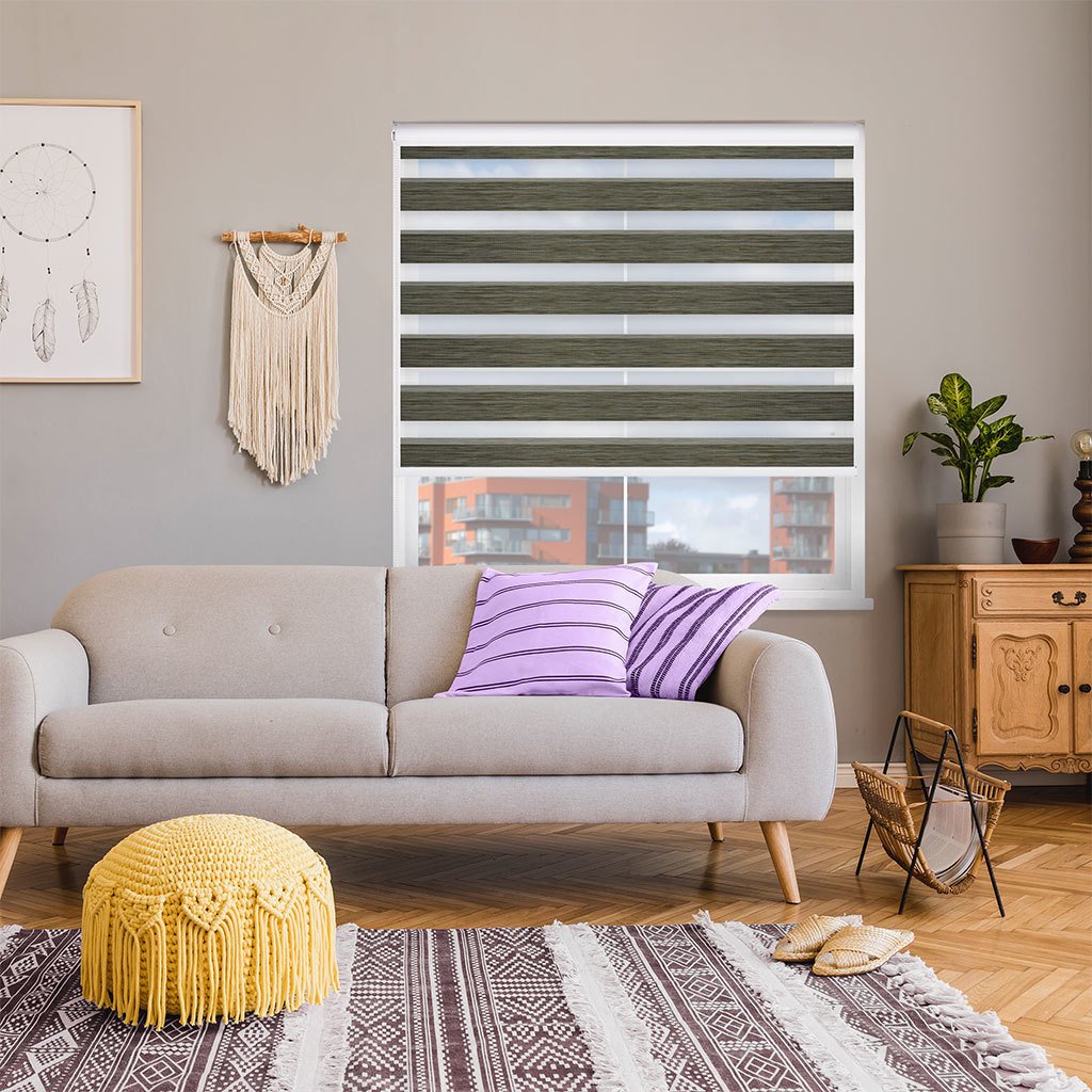 Látkové Rolety Deň a noc fungujú na princípe striedania priehľadných a nepriehľadných vodorovných pruhov. Vďaka ich prekrývaniu môžete efektívne regulovať priechod slnečných lúčov. Rolety môžete zatiahnuť tak, aby fungovali ako plné látkové rolety alebo úplne vytiahnuť nahoru.