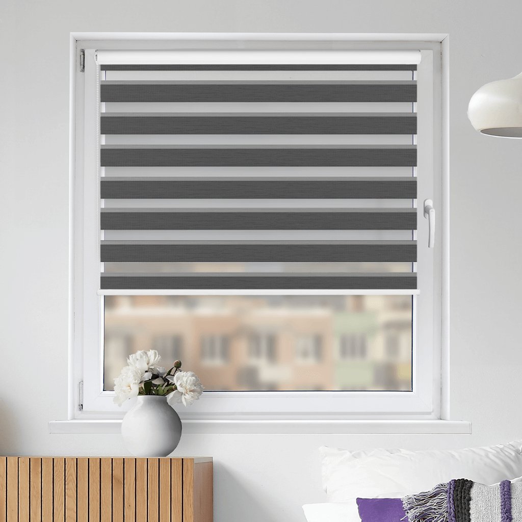 Rolety Deň a noc pre Vás vyrobíme na mieru. Roleta je už zložená a zoskrutkovaná, a dodávame ju vrátane montážnej sady a retiazky.