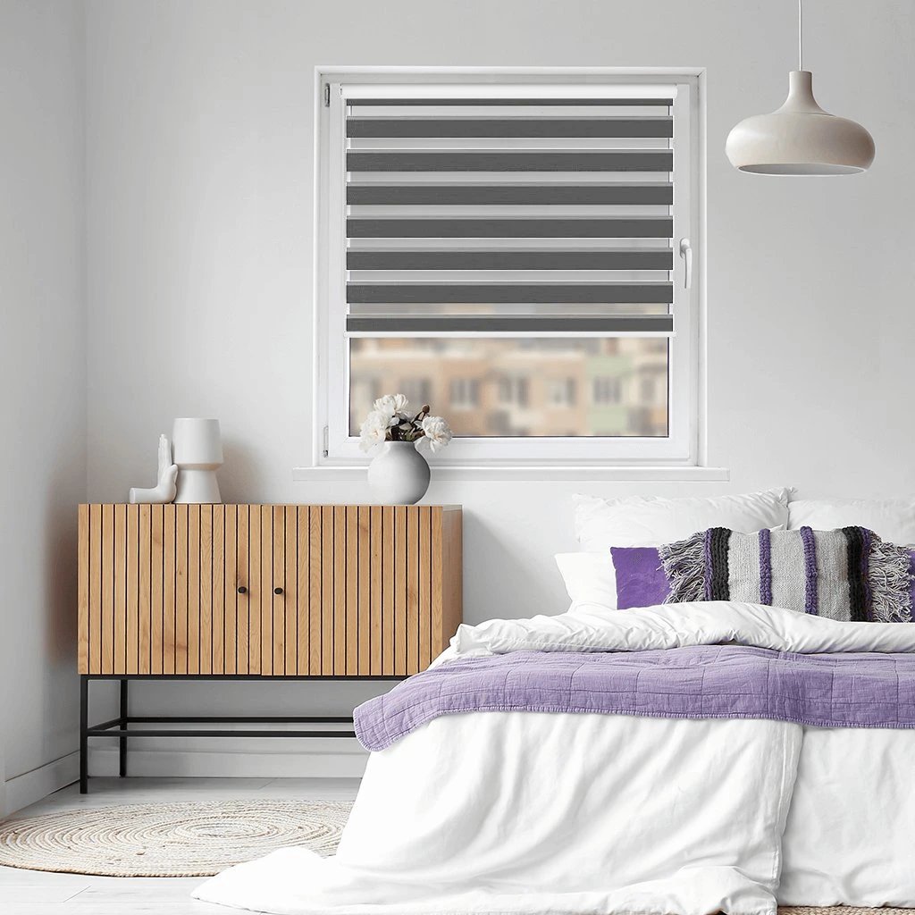 Látkové Rolety Deň a noc fungujú na princípe striedania priehľadných a nepriehľadných vodorovných pruhov. Vďaka ich prekrývaniu môžete efektívne regulovať priechod slnečných lúčov. Rolety môžete zatiahnuť tak, aby fungovali ako plné látkové rolety alebo úplne vytiahnuť nahoru.