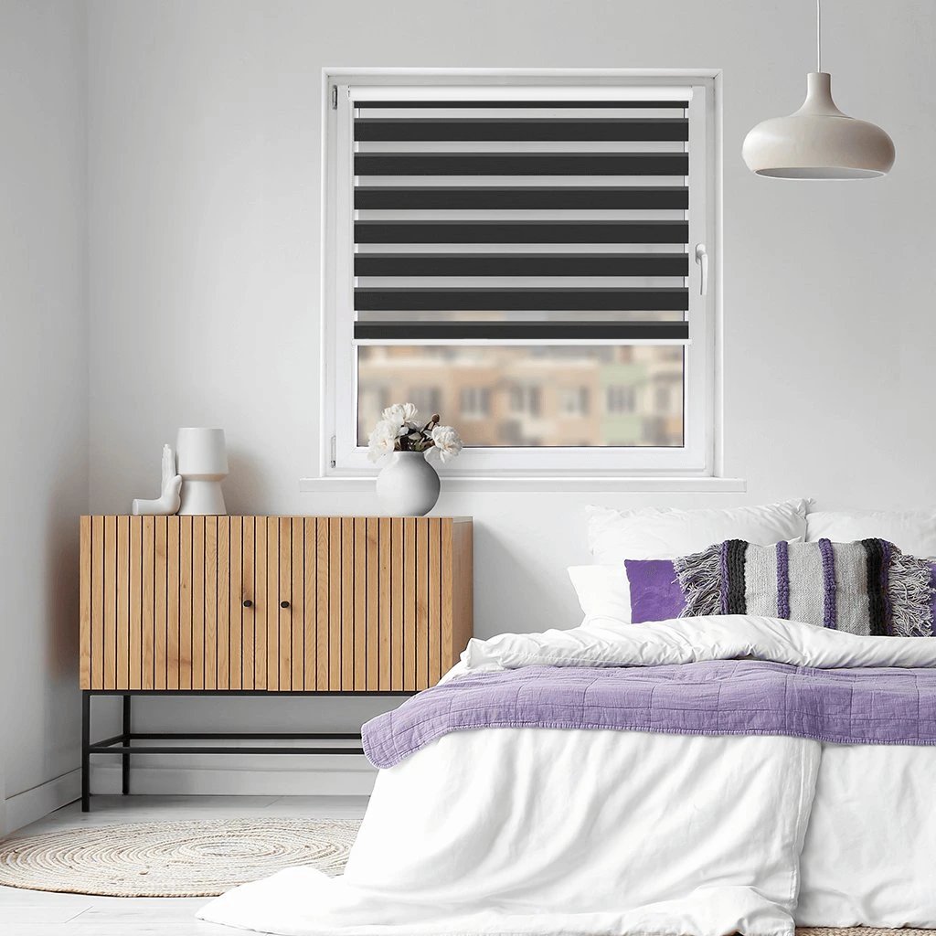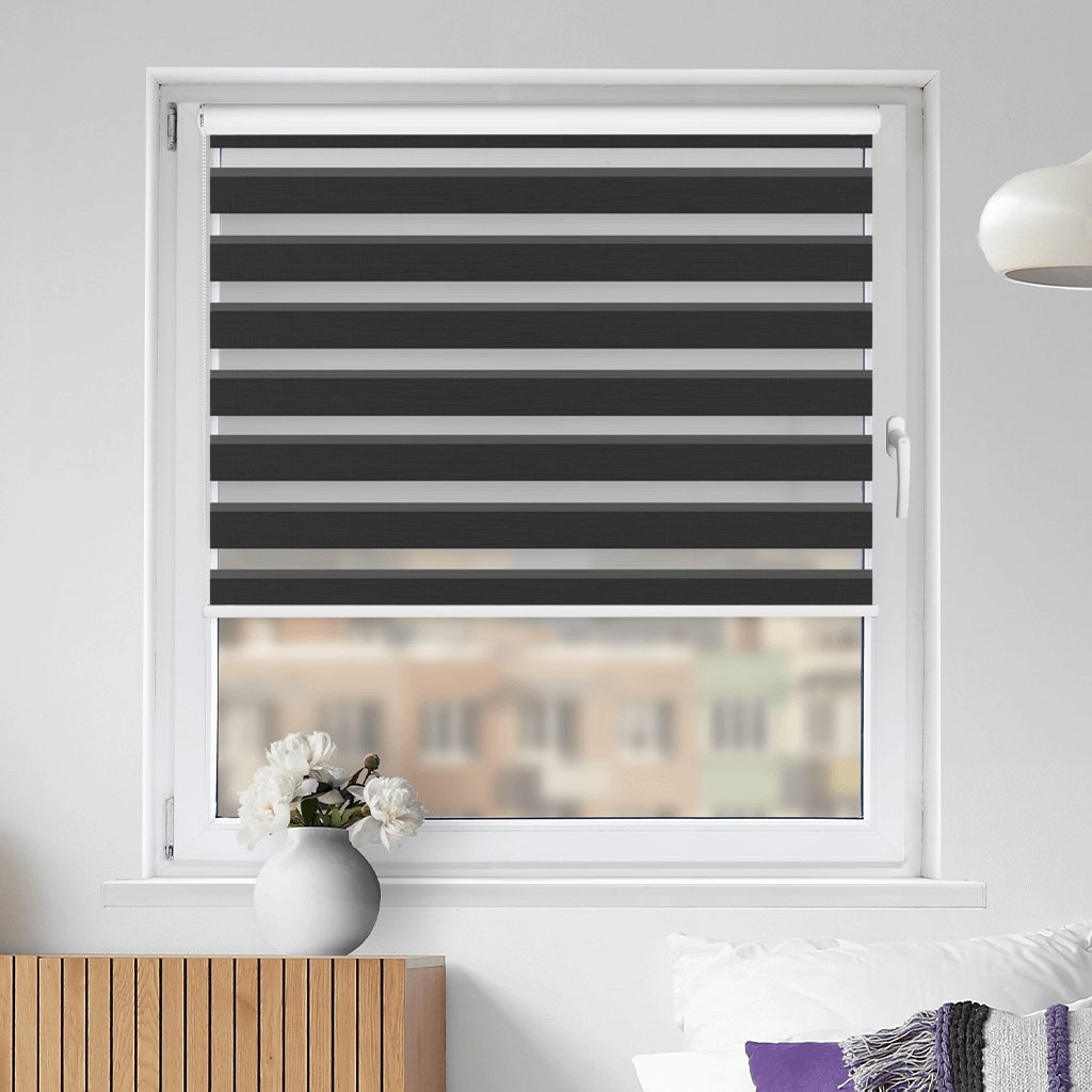 Látkové Rolety Deň a noc fungujú na princípe striedania priehľadných a nepriehľadných vodorovných pruhov. Vďaka ich prekrývaniu môžete efektívne regulovať priechod slnečných lúčov. Rolety môžete zatiahnuť tak, aby fungovali ako plné látkové rolety alebo úplne vytiahnuť nahoru.