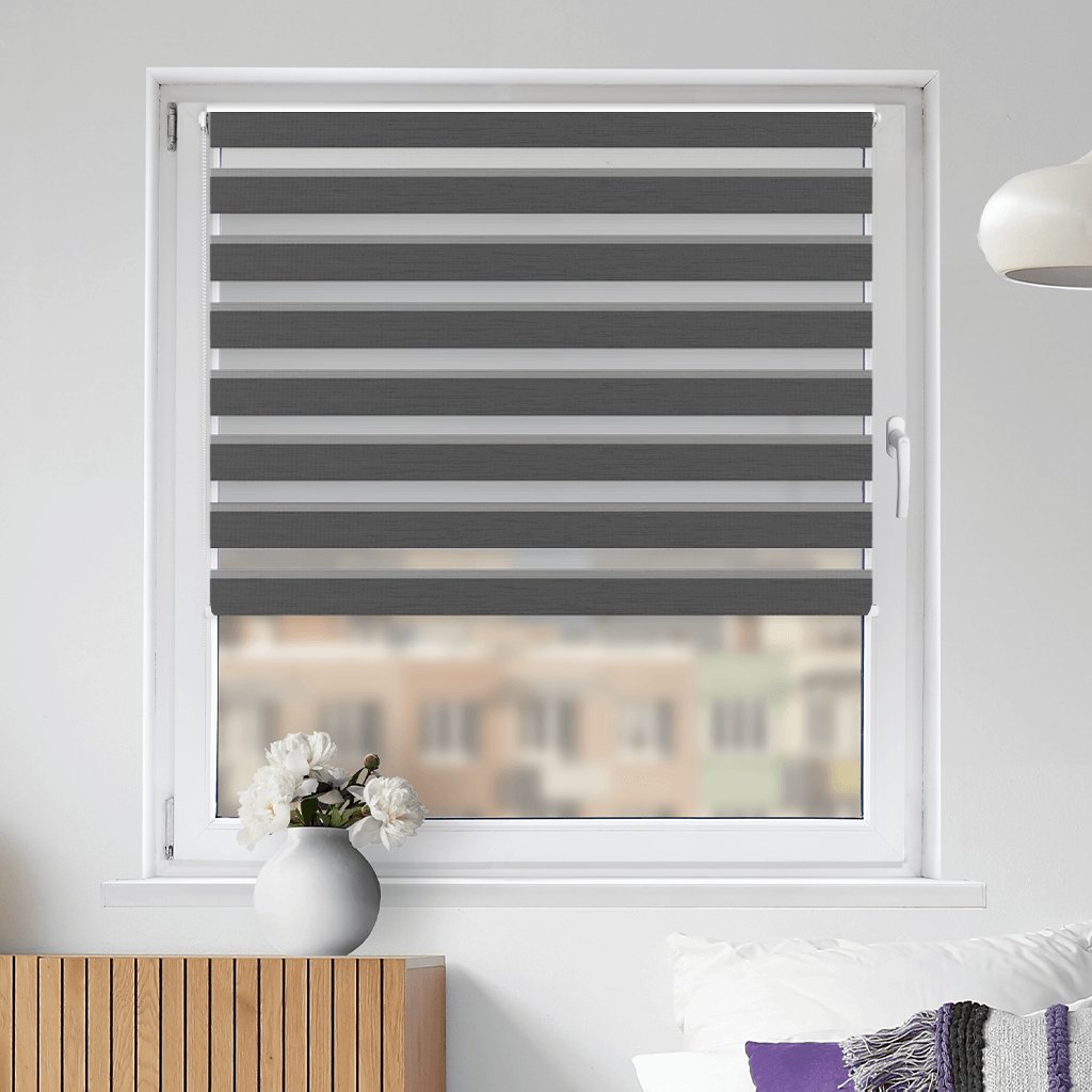 Látkové Rolety Deň a noc fungujú na princípe striedania priehľadných a nepriehľadných vodorovných pruhov. Vďaka ich prekrývaniu môžete efektívne regulovať priechod slnečných lúčov. Rolety môžete zatiahnuť tak, aby fungovali ako plné látkové rolety alebo úplne vytiahnuť nahoru.