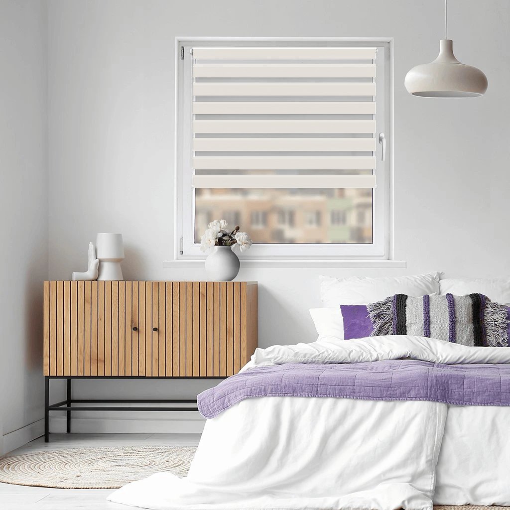 Rolety Deň a noc pre Vás vyrobíme na mieru. Roleta je už zložená a zoskrutkovaná, a dodávame ju vrátane montážnej sady a retiazky. Pre rolety pripevnené priamo na okennom ráme dostanete aj napínací silon, vďaka ktorému rolety zostanú na okne aj po otvorení na ventiláciu.