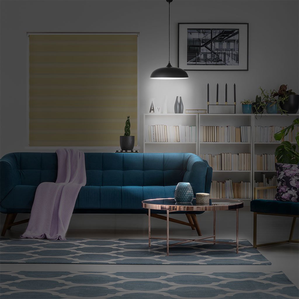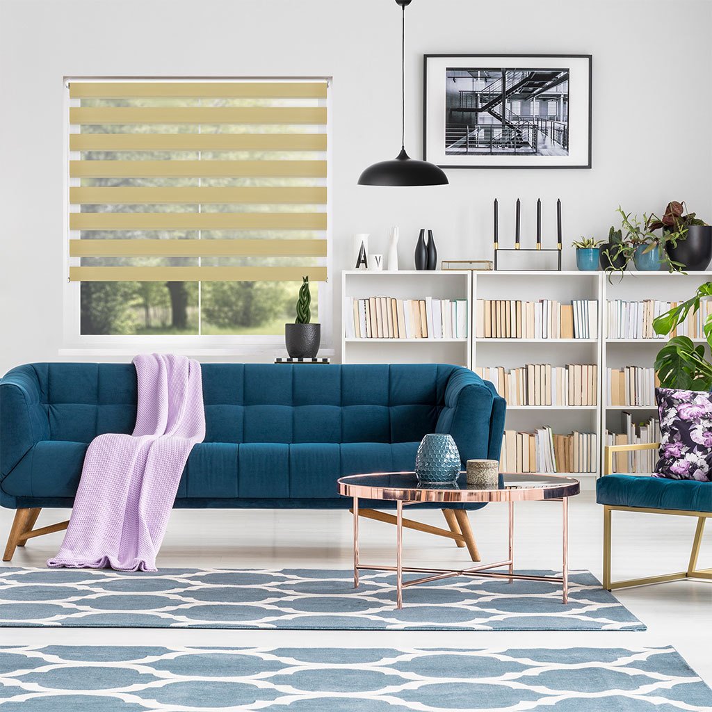 Látkové Rolety Deň a noc fungujú na princípe striedania priehľadných a nepriehľadných vodorovných pruhov. Vďaka ich prekrývaniu môžete efektívne regulovať priechod slnečných lúčov. Rolety môžete zatiahnuť tak, aby fungovali ako plné látkové rolety alebo úplne vytiahnuť nahoru.