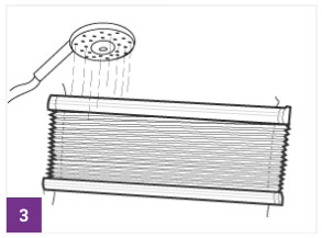 ![]() Roletu následne opláchnite pod sprchou čistou vodou a vyžmýkajte stlačením látky k sebe medzi dvomi profilmi.